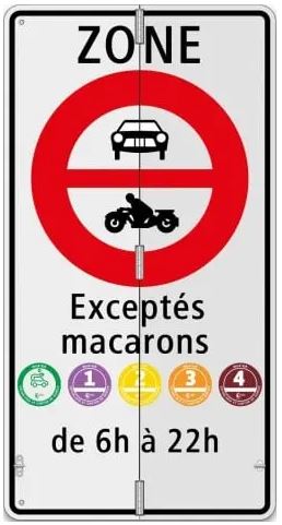 • tylko pojazdy z naklejką/plakietką dopuszczoną podczas szczytu zanieczyszczenia mogą poruszać się w tej strefie (ważna jest również francuska plakietka ekologiczna)